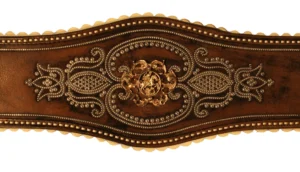 Hosenträgerschild mit bayrischem Wappen und Zinn-Nägeln